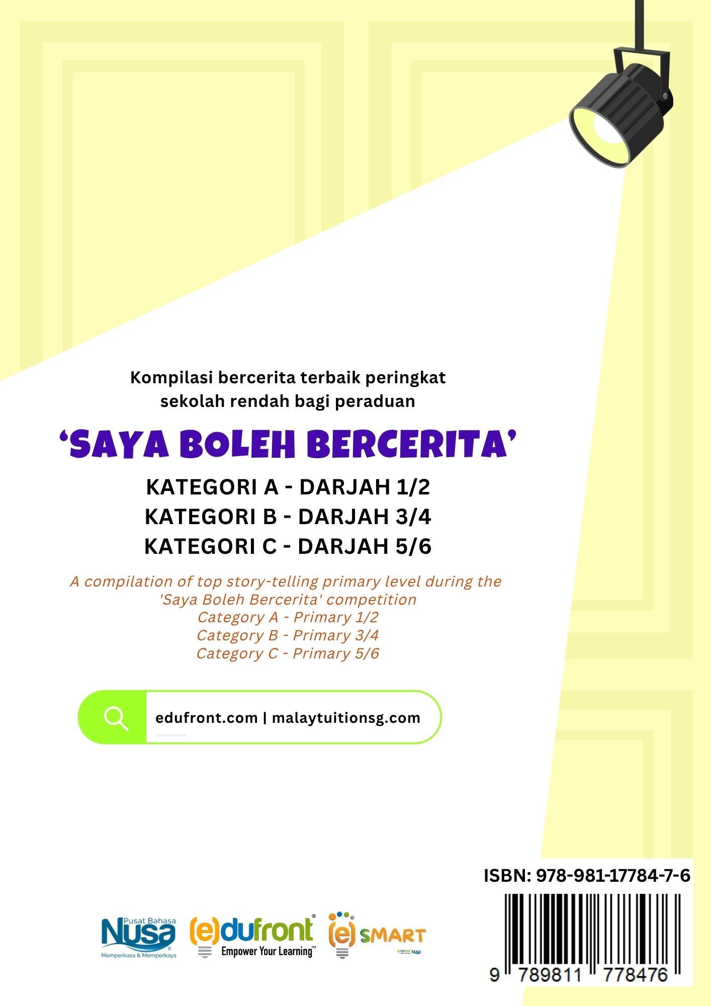 If you are a Saya Boleh Bercerita participant claiming your complimentary copy using a unique code and encounter issues, please contact our Competition Manager, Ms Sulastri, at [nusa@edufront.com] with your registered participant code for verification.